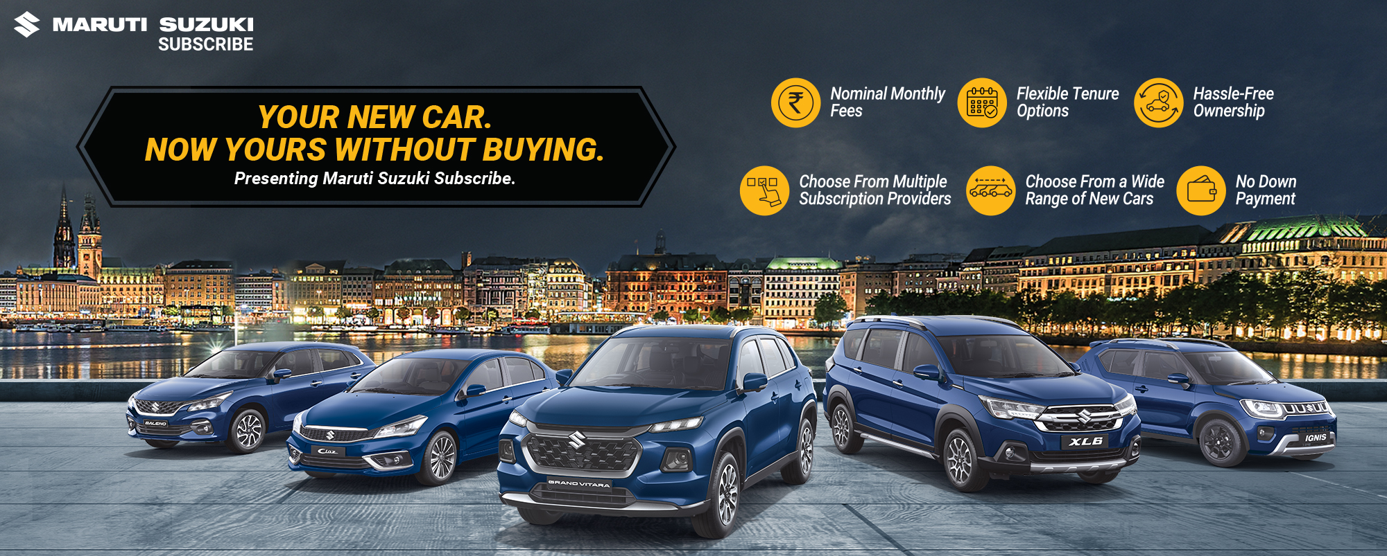 Maruti Suzuki Subscribe enables all customers to enjoy driving their preferred Maruti Suzuki cars without having to deal with all the financial responsibilities that come with owning a car.All you need to do is opt for a monthly subscription plan at a fixed monthly fee, which includes the routine maintenance and insurance costs, and choose a flexible tenure. At Vehicleads in, Hyderpora Byepass, Srinagar, all Hatchback, Sedan, SUV, the MUV models line-up includes Baleno, Invicto, EVitara, Jimny, Ciaz, Ignis, Fronx, Grand Vitara, XL6. Here, you will enjoy Maruti Suzuki Subscribe benefits such as: